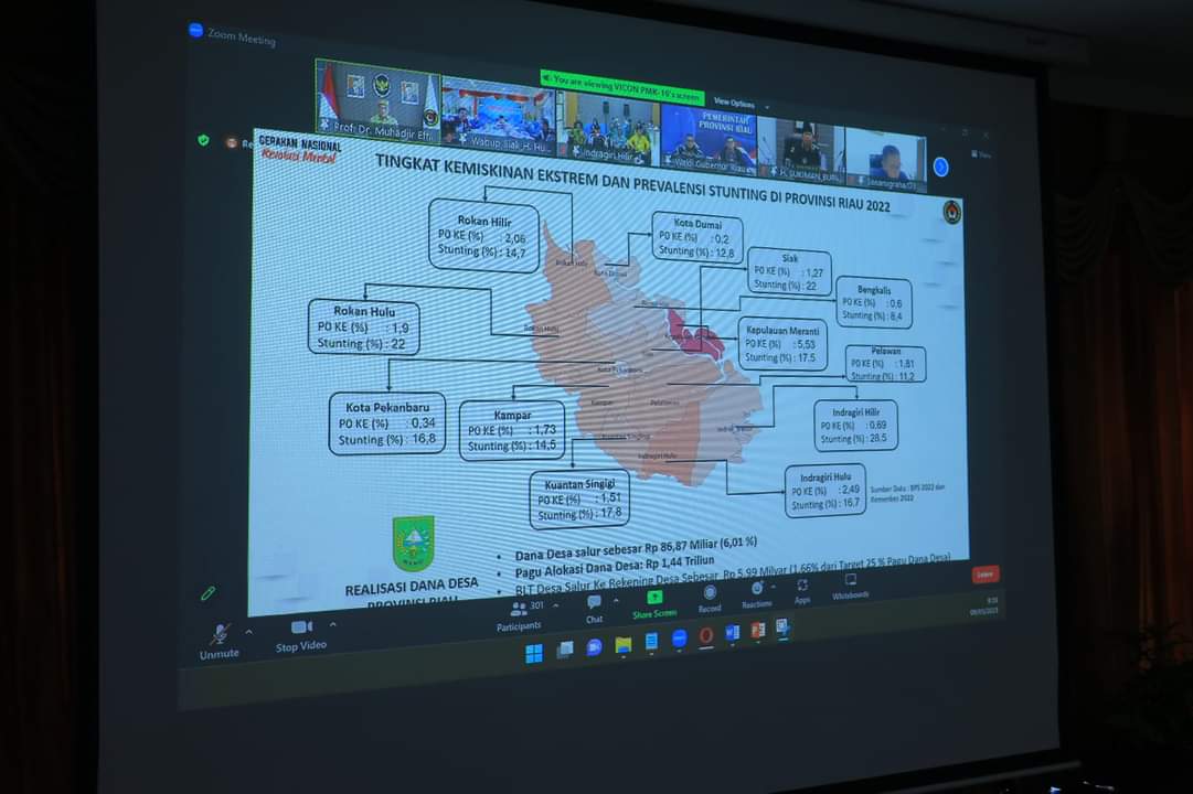 Roadshow dengan tema "Percepatan Penurunan Stunting dan Penghapusan Kemiskinan Ekstrem di Kabupaten/ Kota di Provinsi Riau" ini diikuti secara daring oleh Indra Pomi, bertempat ruang rapat walikota lantai 5 gedung utama komplek perkantoran terpadu di Tenayan Raya.