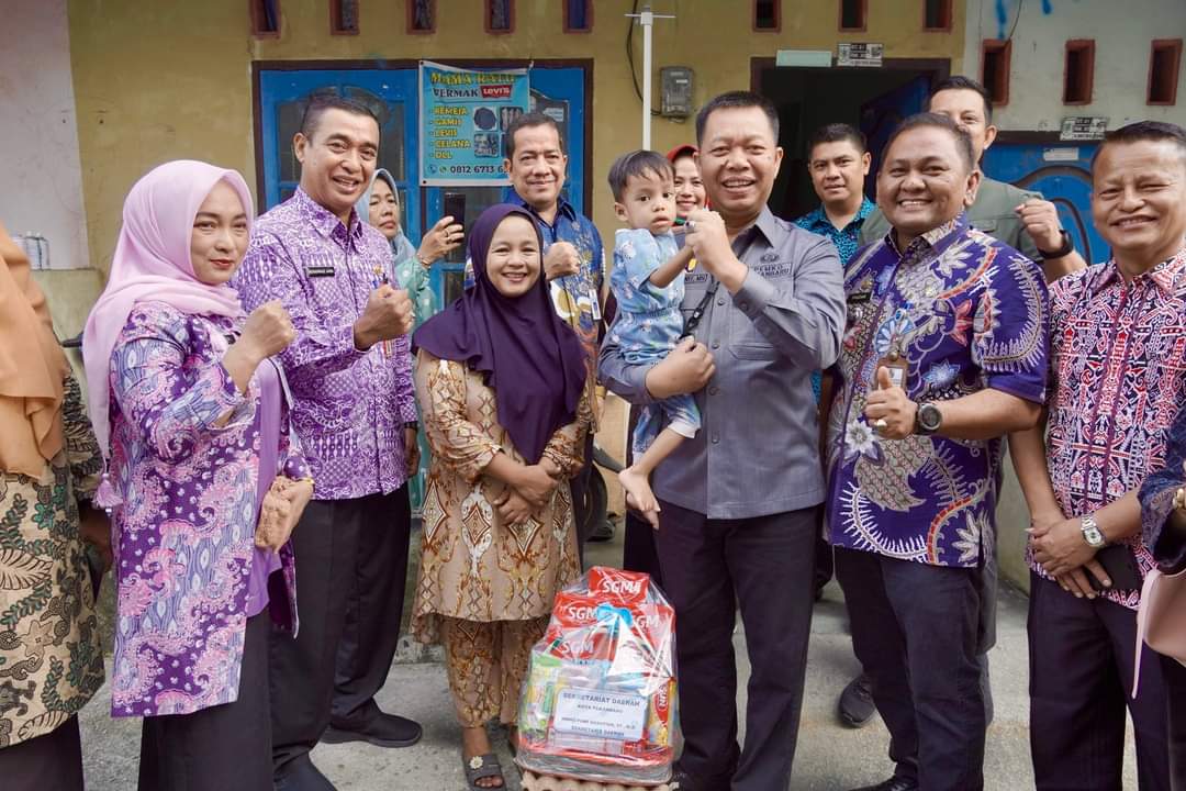 PEKANBARU - Sekretaris Daerah Kota (Sekdako) Pekanbaru Indra Pomi Nasution ST MSi menyalurkan bantuan kepada tiga anak asuh stunting di Kecamatan Marpoyan Damai, Kamis (11/5/2023).