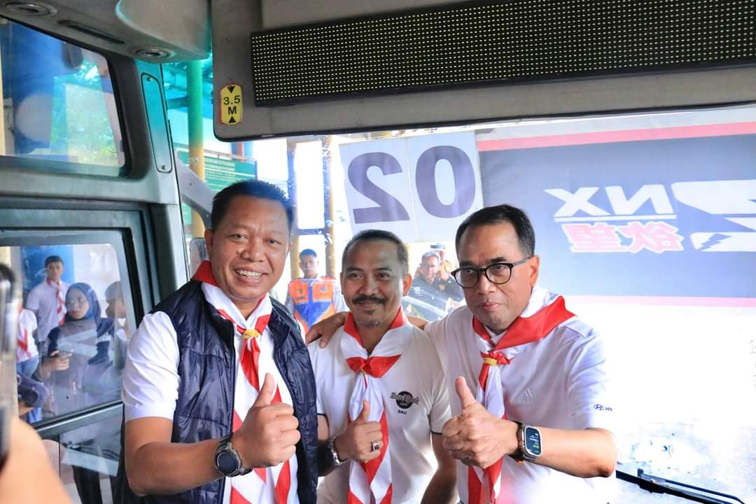 PEKANBARU - Sekretaris Daerah Kota (Sekdako) Pekanbaru Indra Pomi Nasution ST MSi mendampingi Menteri Perhubungan RI, Budi Karya Sumadi saat melaksanakan kunjungan kerja (kunker) ke terminal tipe A Bandar Raya Payung Sekaki (BRPS) Pekanbaru, Minggu (11/6/2023).