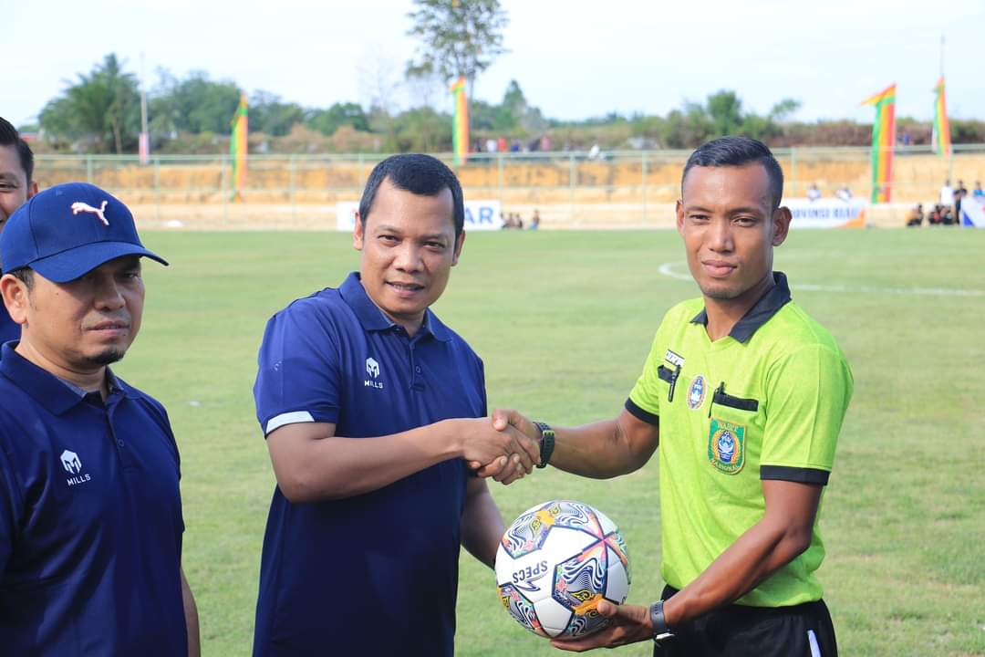 PEKANBARU - Pj Wali Kota Pekanbaru Muflihun SSTP MAP meresmikan lapangan Sepakbola Sport Center Pekanbaru. Giat ini sekaligus membuka Kejuaraan Nasional (Kejurnas) PPLP/Daerah dan SKO Sepak Bola 2023 di Kecamatan Kulim Pekanbaru, Rabu (14/6/2023).
