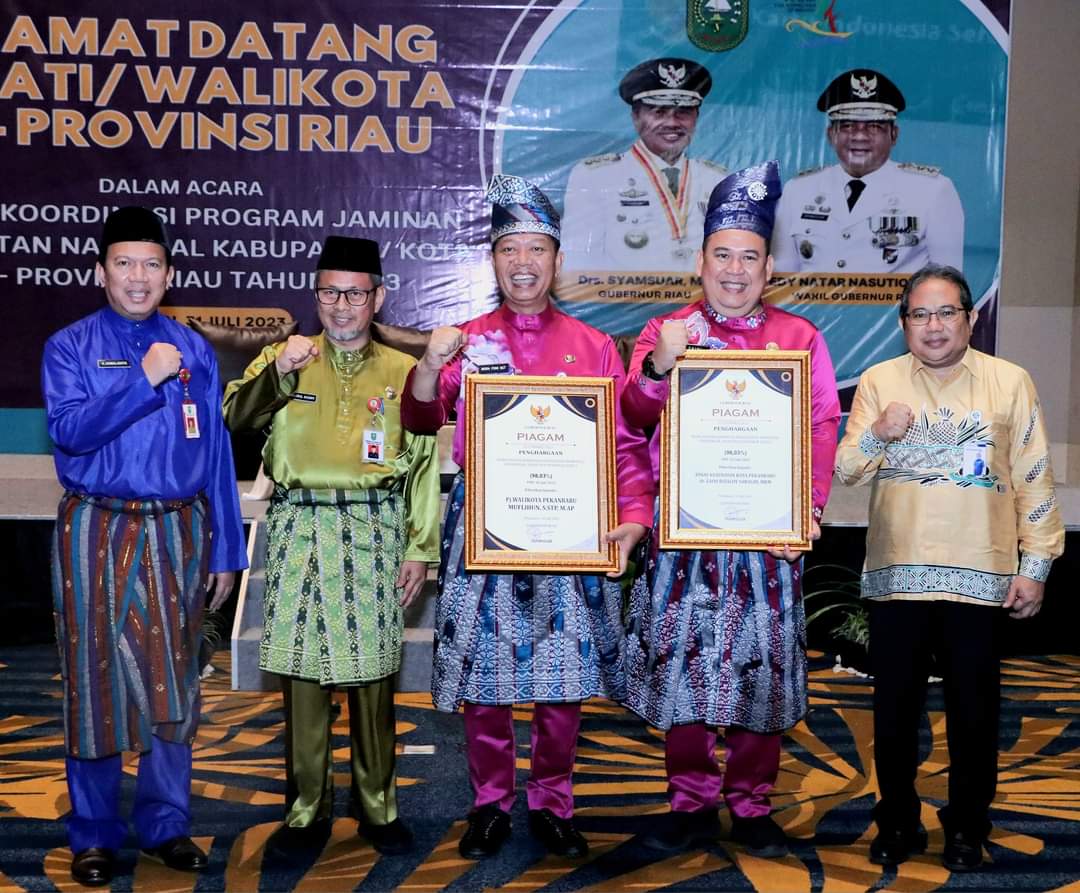 Program Jaminan Kesehatan Nasional di provinsi Riau memiliki total 5,58 juta peserta dari 6,64 juta penduduk di provinsi tersebut. Penghargaan ini merupakan perkembangan positif bagi Pekanbaru yang selama ini giat meningkatkan pelayanan publiknya.