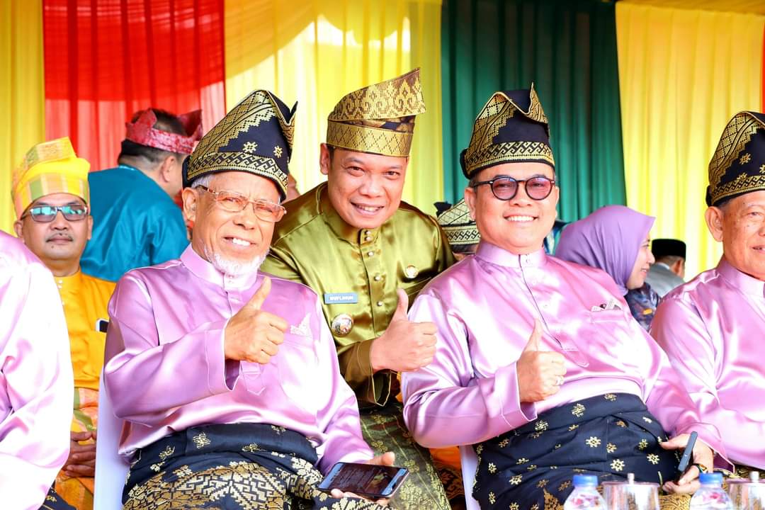 Pj Wali Kota Pekanbaru Muflihun SSTP MAP menerima secara simbolis satu unit kunci mobil dari Gubernur Riau Drs Syamsuar MSi.